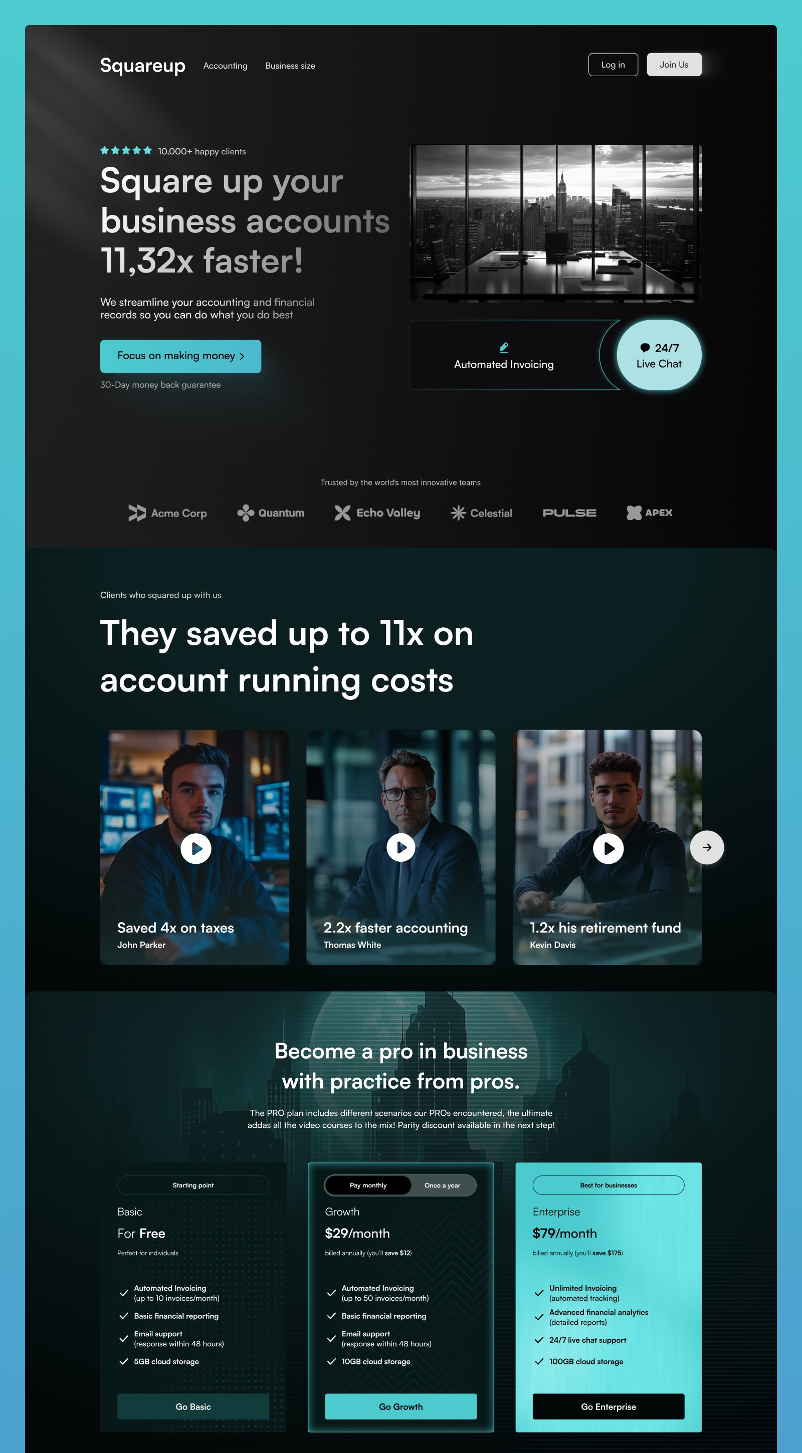 Designed as a visual experiment in simplifying complex fintech UX. Squareup reimagines how accounting platforms communicate speed, clarity, and control—framing automation and trust as the default experience.