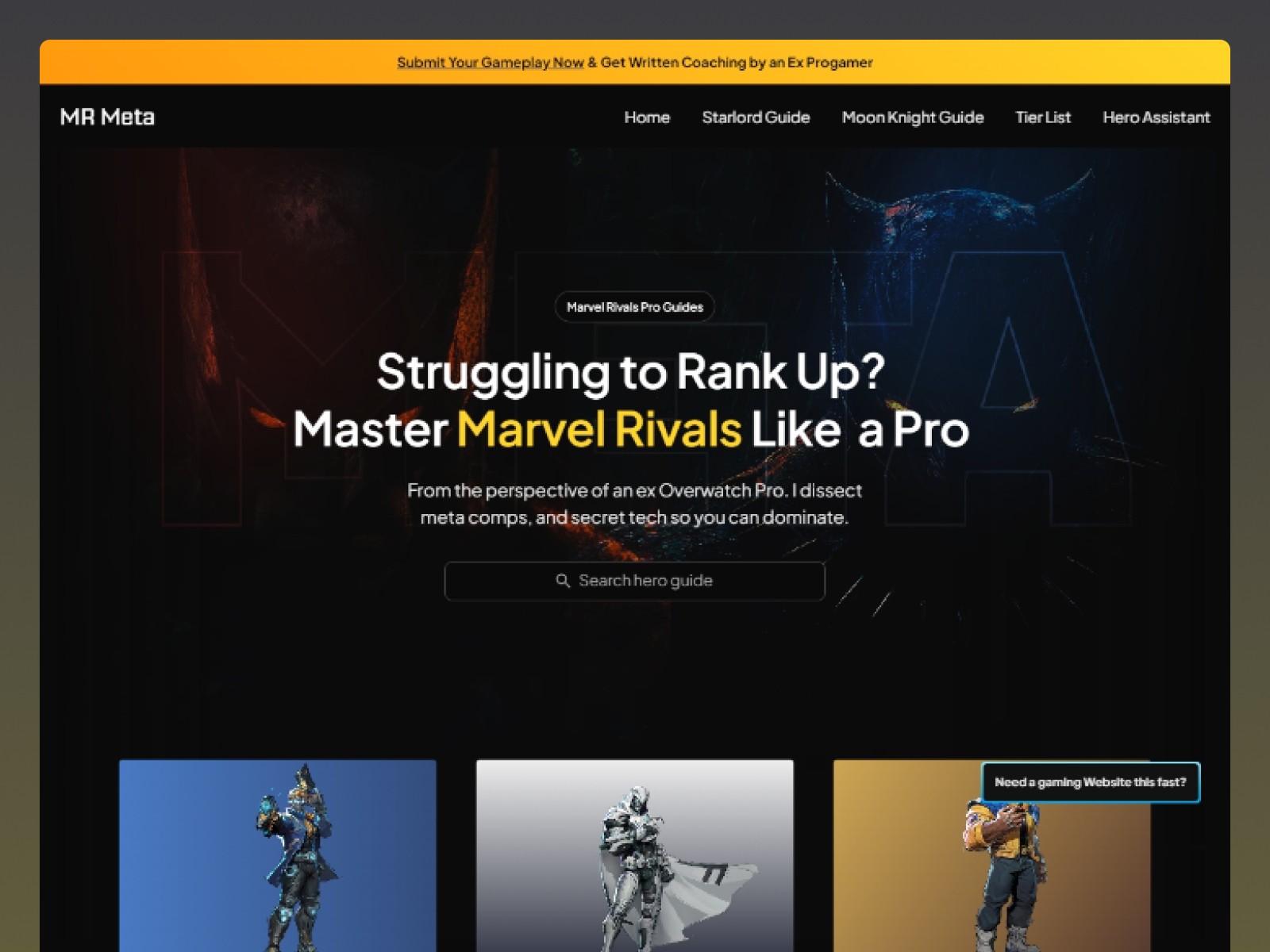 This site breaks down game metas, tier lists, and hero guides in a clean, digestible way. Launched in Framer, optimized for SEO, and hitting 1,100+ unique visitors in the first 30 days. A tactical site for tactical gamers.
